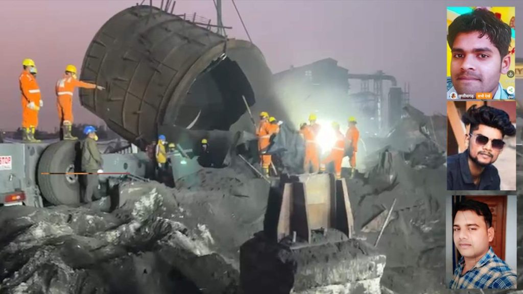 बता दें, जिले के सरगांव में ग्राम पंचायत रामबोड़ स्थित कुसुम लोहा फैक्ट्री में 9 जनवरी को साइलो के गिरने से एक इंजीनियर के अलावा 3 मजदूर राखड़ में दब गए. घटना की सूचना मिलते ही एनडीआरएफ, एसडीआरएफ और स्थानीय प्रशासन की टीम ने रेस्क्यू ऑपरेशन शुरू किया. सबसे पहले एक मजदूर मनोज धृतलहरे को घायल अवस्था में घटना स्थल से निकाला गया था, जिसकी उपचार के दौरान अस्पताल में मौत हो गई थी. वहीं 40 घंटे के बाद आज सुबह इंजीनियर और 2 मजदूरों के शव को ढूंढकर निकाला गया.