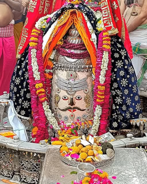 श्री महाकालेश्वर को भस्म चढ़ाई गई। साथ ही शेषनाग का रजत मुकुट, रुद्राक्ष की माला के साथ सुगंधित पुष्प से बनी गुलाब के फूलों की माला धारण की। बाबा को फल और मिष्ठान का भोग लगाया गया। वहीं मस्तक पर ॐ और त्रिपुंड अर्पित का भगवान का राजा स्वरूप में मनमोहक श्रृंगार किया गया।