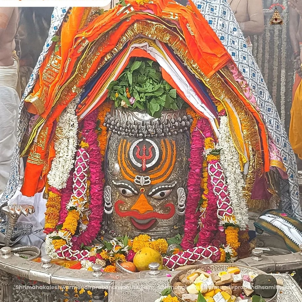 सोमवार को भगवान महाकाल के मस्तक पर चंदन का त्रिपुण्ड, त्रिशूल अर्पित कर दिव्य श्रृंगार किया गया। श्री महाकालेश्वर को भस्म चढ़ाई गई। साथ ही शेषनाग का रजत मुकुट, रजत की मुण्डमाल, रुद्राक्ष की माला के साथ सुगंधित पुष्प से बनी फूलों की माला धारण की। बाबा को फल और मिष्ठान का भोग लगाया गया। भोले बाबा का ड्रायफ्रूट से आकर्षक श्रृंगार किया गया।
