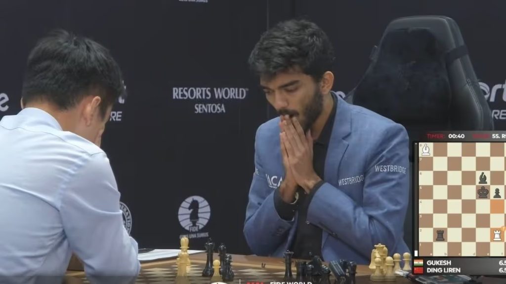 World Chess Championship: 18 साल के भारतीय ग्रैंडमास्टर डी गुकेश शतरंज के सबसे युवा वर्ल्ड चैंपियन बन गए है। गुकेश सिंगापुर में विश्व शतरंज चैंपियनशिप के अंतिम गेम में डिंग लिरेन की गलती के बाद सबसे कम उम्र के वर्ल्ड चैंपियन बने। यह गलती तब हुई जब टाईब्रेक की संभावना बहुत वास्तविक लग रही थी। डी गुकेश ने 14 बाजी के मैच की आखिरी क्लासिकल बाजी जीतकर डिंग लिरेन के 6.5 के मुकाबले जरूरी 7.5 अंक के साथ खिताब जीता। पांचवें घंटे में खेल तब खत्म हुआ जब डिंग लिरेन ने एक गलती की, जिसकी वजह से उन्हें गेम, मैच और ताज तीनों से हाथ धोना पड़ा।