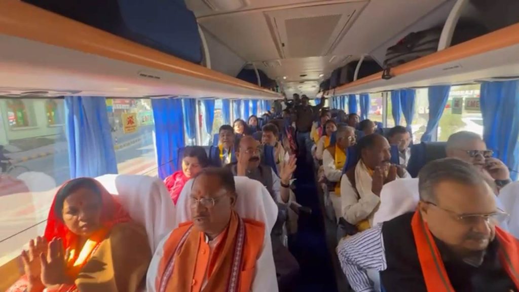 रायपुर. राज्यपाल रमेन डेका, मुख्यमंत्री विष्णुदेव साय, विधानसभा अध्यक्ष डॉ. रमन सिंह समेत साय कैबिनेट के मंत्री, सांसद, बीजेपी के विधायक और कांग्रेस के 6 विधायक प्रयागराज महाकुंभ पहुंच गए हैं. सभी भजन गाते हुए बस से अरैल घाट जा रहे हैं, जहां स्नान कर मां गंगा से छत्तीसगढ़ की खुशहाली और सुख-समृद्धि की कामना करेंगे.