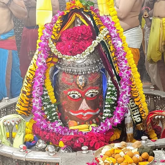 शनिवार को भगवान महाकाल के मस्तक पर त्रिनेत्र अर्पित कर ड्रायफ्रूट से दिव्य श्रृंगार किया गया। श्री महाकालेश्वर को भस्म चढ़ाई गई। साथ ही शेषनाग का रजत मुकुट, रजत की मुण्डमाल, रुद्राक्ष की माला के साथ सुगंधित पुष्प से बनी फूलों की माला धारण की। बाबा को फल और मिष्ठान का भोग लगाया गया। भोले बाबा का ड्रायफ्रूट से आकर्षक श्रृंगार किया गया।