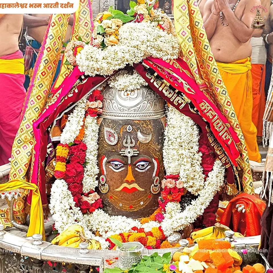 शुक्रवार को भगवान महाकाल का दिव्य श्रृंगार किया गया। श्री महाकालेश्वर को भस्म चढ़ाई गई। साथ ही शेषनाग का रजत मुकुट, रजत की मुण्डमाल, रुद्राक्ष की माला के साथ सुगंधित पुष्प से बनी फूलों की माला धारण की। बाबा को फल और मिष्ठान का भोग लगाया गया। भोले बाबा का ड्रायफ्रूट से आकर्षक श्रृंगार किया गया।