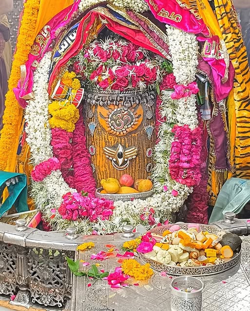 शनिवार को भगवान महाकाल का दिव्य श्रृंगार किया गया। श्री महाकालेश्वर को भस्म चढ़ाई गई। साथ ही शेषनाग का रजत मुकुट, रजत की मुण्डमाल, रुद्राक्ष की माला के साथ सुगंधित पुष्प से बनी फूलों की माला धारण की। बाबा को फल और मिष्ठान का भोग लगाया गया। भोले बाबा को मस्तक पर ॐ अर्पित कर ड्रायफ्रूट से आकर्षक श्रृंगार किया गया।