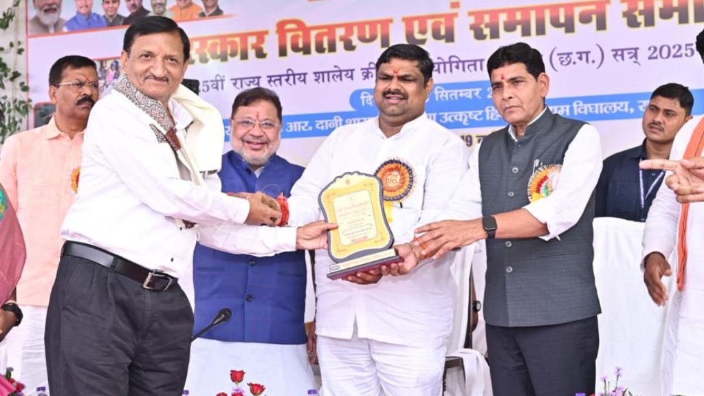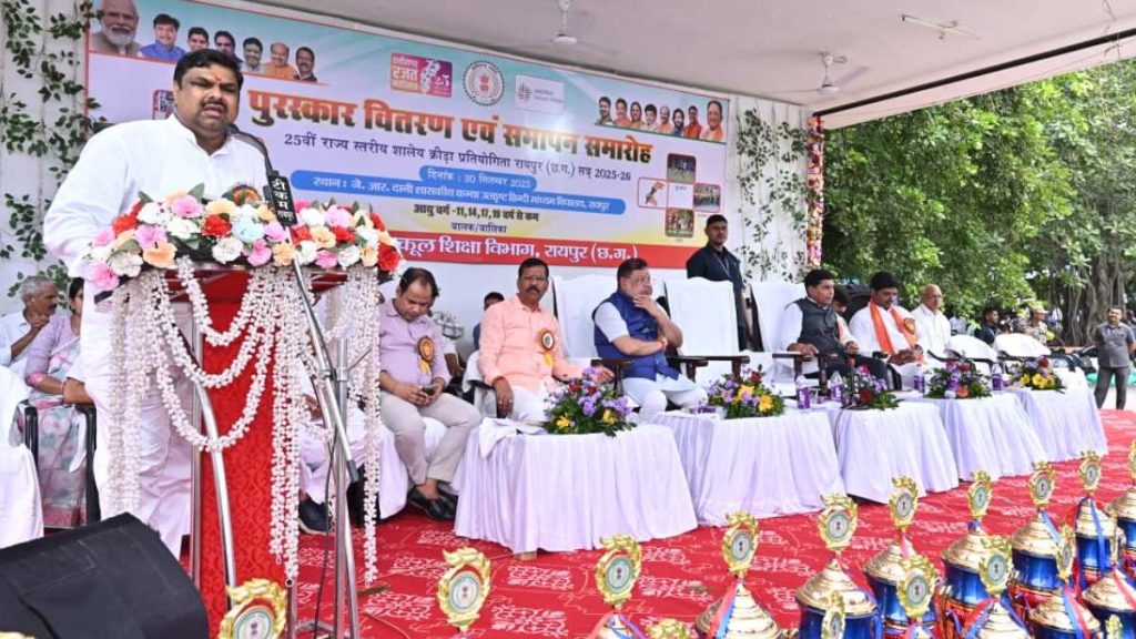 सत्या राजपूत, रायपुर। राजधानी रायपुर स्थित जे. आर. दानी शासकीय कन्या उत्कृष्ट हिंदी माध्यमिक विद्यालय में आज 25वीं राज्य स्तरीय शाला क्रीड़ा प्रतियोगिता का समापन एवं पुरस्कार वितरण समारोह बड़े उत्साह और उल्लास के साथ सम्पन्न हुआ। इस अवसर पर स्कूल शिक्षा मंत्री गजेंद्र यादव मुख्य अतिथि के रूप में शामिल हुए। इस दौरान उन्होंने प्रतियोगिता के विजेता खिलाड़ियों को समाानित किया। साथ ही राज्य के स्कूलों में बेहतर व्यवस्था के लिए महत्वपूर्ण घोषणाएं भी की।