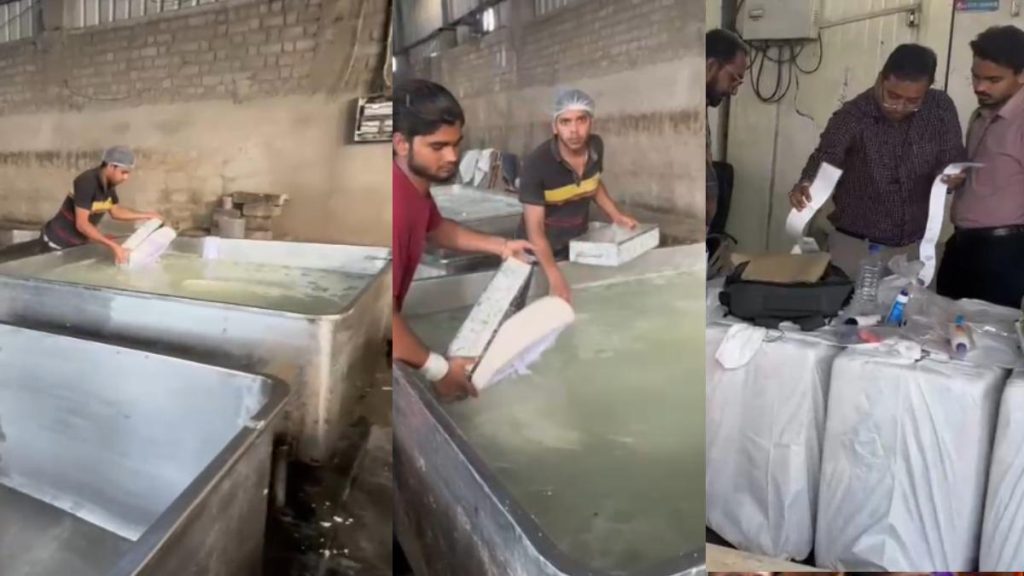 खाद्य सुरक्षा अधिकारी सिद्धार्थ पांडेय ने बताया कि एस जे मिल्क प्रोडक्ट पनीर फै़क्टरी में खाद्य विभाग का छापा की कार्रवाई की गई है. 3,650 किलो मिलावटी पनीर ज़ब्त किया गया है. लगभग 2750 किलो पैकिंग पनीर के साथ 1000 किलो खुला पनीर जब्त किया गया है, जिसकी कुल कीमत 9,18,750 रुपए बताई जा रही है. इसके अलावा 143 बोरी सॉलिड पाउडर जब्त किया गया है, जिसका वजन 3,575 किलों हैं और इसकी कीमत लगभग 12 लाख से ज्यादा है. सिर्फ सॉलिड मिल्क पाउडर से पनीर बनाया जा रहा है. न्यूट्रीशन वैल्यू सर्टिफिकेट और मेडिकल सर्टिफिकेट नहीं होना, अन हाइजीनिक कंडीशन, स्टॉक मेंटेनस रजिस्टर के साथ पेस्ट कंट्रोलर होने के आधार पर कार्रवाई जारी है. फिलहाल सैंपल लिया जा रहा है, सैंपल की जांच की जाएगी. जांच रिपोर्ट के आधार पर आगे की कार्रवाई की जाएगी.