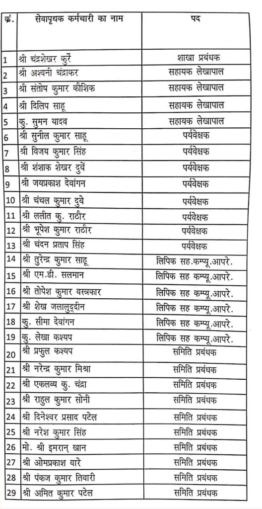 वीरेंद्र गहवई, बिलासपुर. जिला सहकारी केंद्रीय बैंक के दोषी 29 कर्मचारियों को फिर बर्खास्त किया गया। यह निर्णय बिलासपुर में हुई स्टाफ कमेटी की बैठक में लिया गया। दरअसल भर्ती प्रक्रिया में गड़बड़ी हुई थी, जिसके चलते यह फैसला लिया गया।