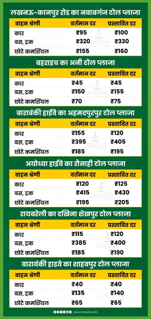 विक्रम मिश्र, लखनऊ. राष्ट्रीय राजमार्ग प्राधिकरण ने अब अपने सभी टोल प्लाजा (Toll Plaza) पर शुल्क बढ़ाने का फैसला किया है. इसके तहत अब हर टोल पर 5 से 10 रुपये तक का इजाफा किया जाएगा. जिसका सीधा असर अब जनता पर पड़ने वाला है. सड़को की बेहतर स्थिति नहीं होने और लगातार दुर्घटनाओं की वजह से टोल में राशि वृद्धि को लेकर जनता में आक्रोश है.
