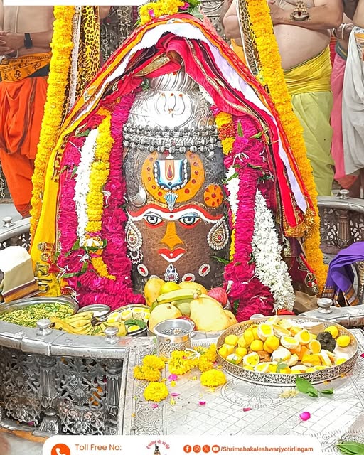 शुक्रवार को भगवान महाकाल का दिव्य श्रृंगार किया गया। श्री महाकालेश्वर को भस्म चढ़ाई गई। साथ ही शेषनाग का रजत मुकुट, रजत की मुण्डमाल, रुद्राक्ष की माला के साथ सुगंधित पुष्प से बनी फूलों की माला धारण की। बाबा को फल और मिष्ठान का भोग लगाया गया। भोले बाबा के मस्तक पर वैष्णव तिलक अर्पित कर भगवान विष्णु के स्वरूप में आकर्षक श्रृंगार किया गया।