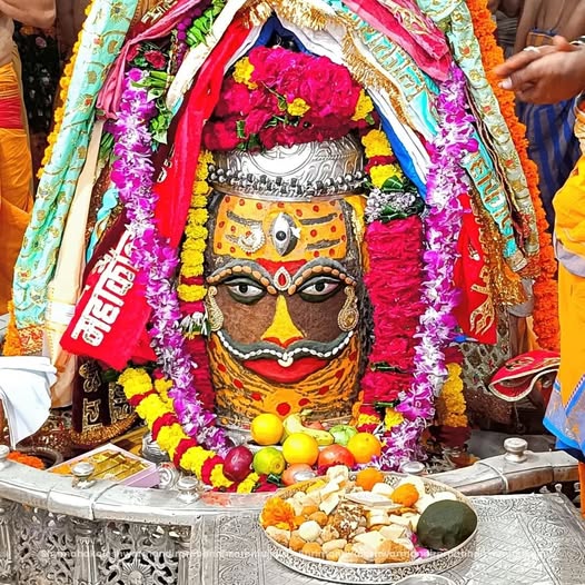 गुरुवार को भगवान महाकाल का त्रिपुंड चंद्र और त्रिनेत्र अर्पित कर दिव्य श्रृंगार किया गया। श्री महाकालेश्वर को भस्म चढ़ाई गई। साथ ही शेषनाग का रजत मुकुट, रजत की मुण्डमाल, रुद्राक्ष की माला के साथ सुगंधित पुष्प से बनी फूलों की माला धारण की। बाबा को फल और मिष्ठान का भोग लगाया गया। भोले बाबा का ड्रायफ्रूट से आकर्षक श्रृंगार किया गया।