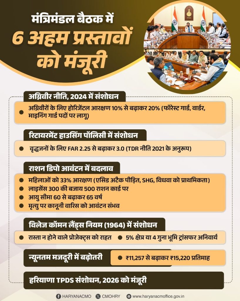 - ₹11,257 से बढ़ाकर ₹15,220 प्रति माह हरियाणा TPDS संशोधन 2026 को मंजूरी