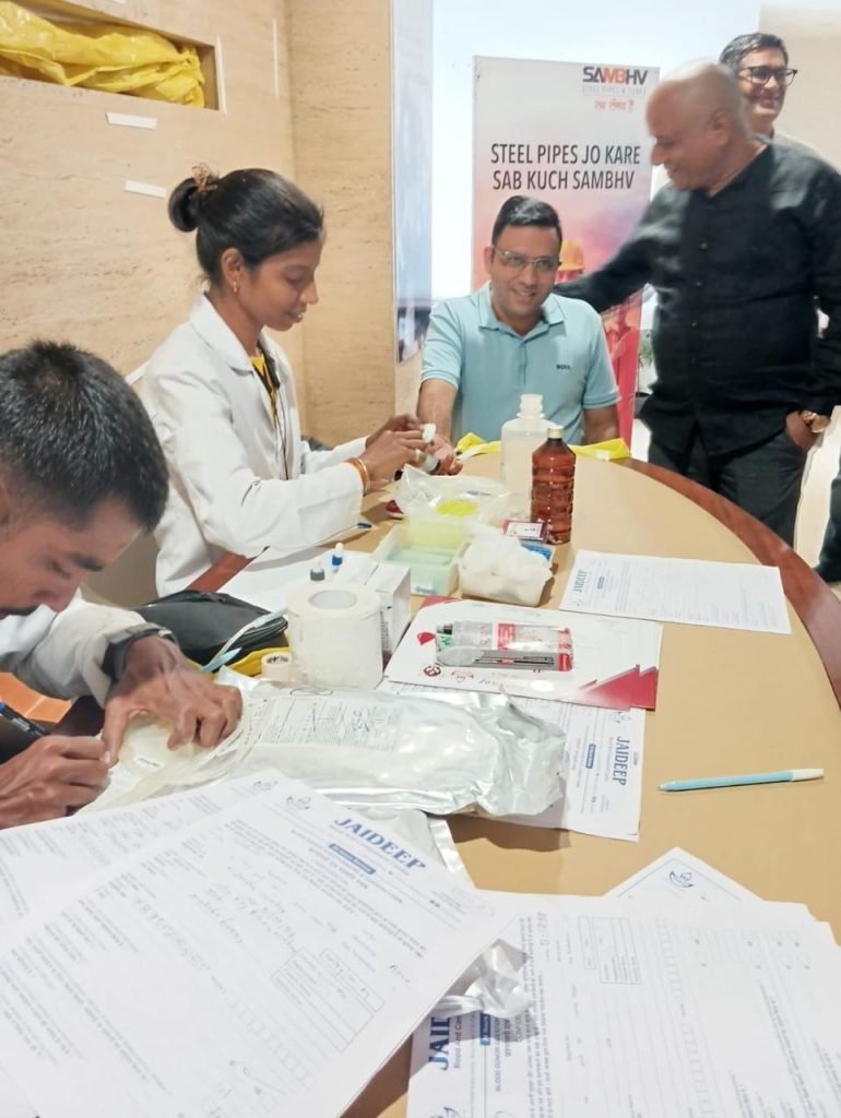 इस मानवीय पहल में संभव ग्रुप के रायपुर स्थित कॉर्पोरेट कार्यालय में रक्तदान शिविर का आयोजन किया गया. काश फाउंडेशन, रायपुर के सहयोग से आयोजित इस शिविर में अधिकारियों और कर्मचारियों ने मिलकर 27 यूनिट रक्त दान किया, जो उनके सामाजिक दायित्वों के प्रति समर्पण का एक सशक्त प्रमाण है. इस अवसर पर संभव ग्रुप के चेयरमैन एवं कार्यकारी निदेशक सुरेश गोयल और प्रबंध निदेशक एवं सीईओ विकास गोयल भी उपस्थित थे.