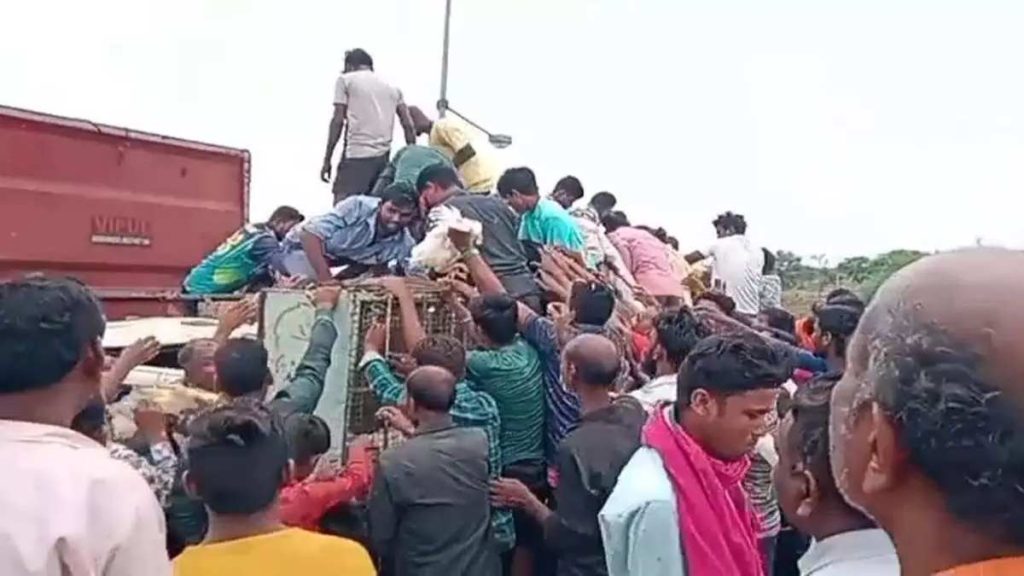 वाहन में फंसे ड्राइवर को बचाने कोई आगे नहीं आया. लोग मुर्गियां लेकर भागते नजर आए. इस मामले का वीडियो सोशल मीडिया पर जमकर वायरल हो रहा है, जिसमें स्पष्ट रूप से देख सकते हैं कि किस तरह से लोग वाहन में चढ़कर मुर्गियां निकल रहे हैं.