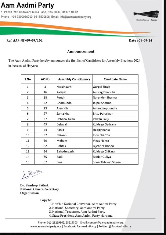 कांग्रेस पहले ही 11 सीटों पर उम्मीदवार घोषित कर चुकी है, वहां पर भी AAP ने उतारे अपने उम्मीदवार