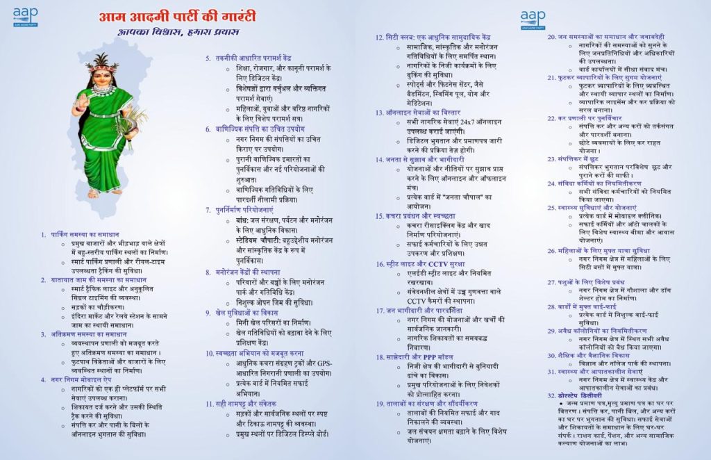 AAP CG Manifesto : रायपुर. छत्तीसगढ़ के विधानसभा चुनाव 2023 में दो-दो हाथ करने के बाद अब नगरीय निकाय चुनाव और पंचायत चुनाव में ‘आप’ जोर आजमा रही है. आप पार्टी प्रदेश की राजनीति में अपनी दमदार मजबूती तलाश रही है. आज प्रदेश अध्यक्ष गोपाल साहू और प्रदेश महासचिव वदूद आलम ने गारंटी पत्र जारी किया, जिसमें 30 गारंटियों की झड़ी लगा दी.