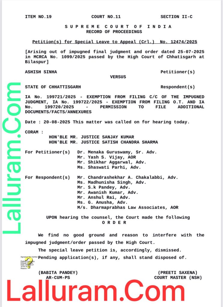 रायपुर। मेडिकल छात्रा के शारीरिक उत्पीड़न के आरोपित डाक्टर आशीष सिन्हा को हाईकोर्ट के बाद सुप्रीम कोर्ट से भी झटका लगा है. सुप्रीम कोर्ट में जस्टिस संजय कुमार एवं जस्टिस सतीश चंद्र की डबल बेंच ने हाईकोर्ट के आदेश में हस्ताक्षेप करने का कोई उचित आधार नहीं पाते हुए डॉ. सिन्हा की विशेष अनुमति याचिका को खारिज कर दिया.