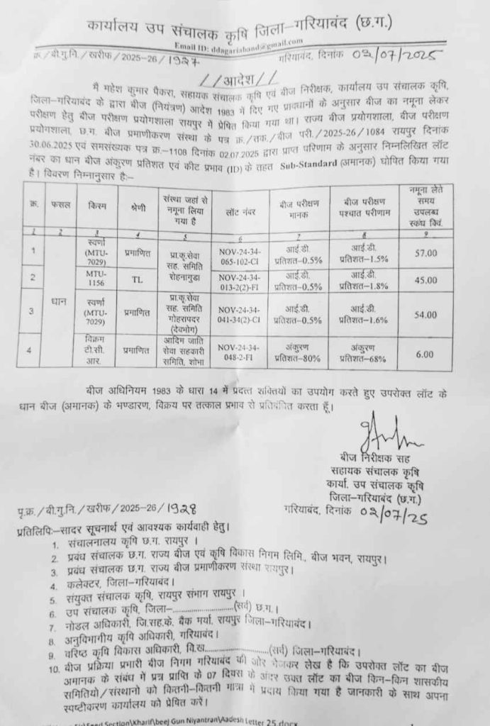 पुरुषोत्तम पात्र, गरियाबंद। जरूरत के समय किसानों को समय पर जहां बीज निगम बीज उपलब्ध कराने में नाकाम रहा, तो वहीं समितियों ने किसानों को अमानक बीज थमा दिया. अब लापरवाही सामने आने पर अब समितियां अमानक बीज लेने वाले किसानों की सूची बना रही है.