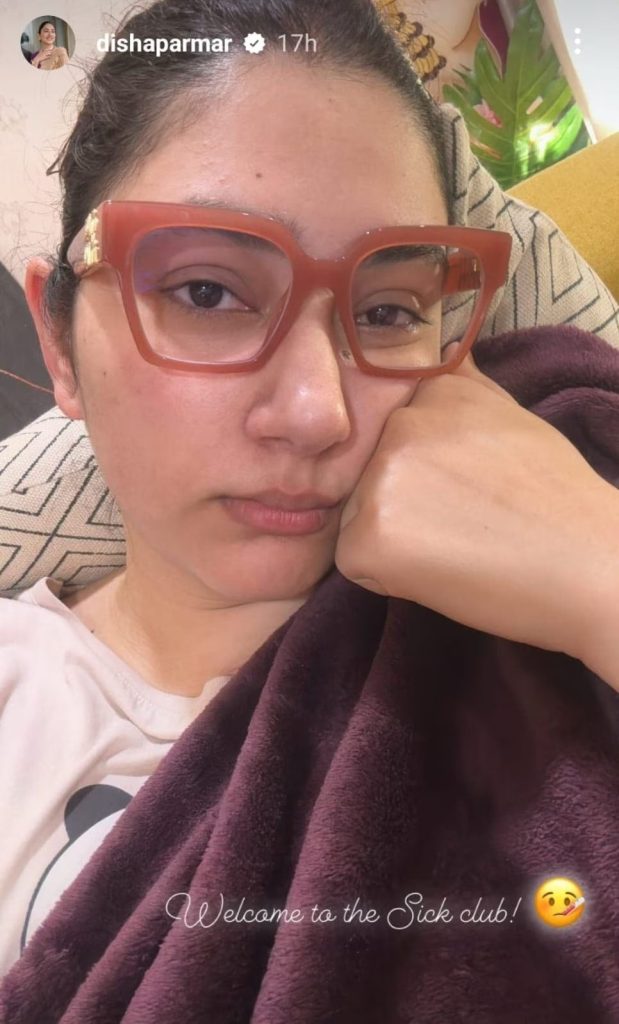 राहुल वैद्य (Rahul Vaidya) के साथ-साथ अब दिशा भी बीमार हो गई हैं. ये भी डेंगू की चपेट में आ गई हैं. एक्ट्रेस ने इंस्टा स्टोरी पर जो फोटो शेयर की है उसमें उनकी तबीयत काफी खराब लग रही है. सामने आए फोटो में एक्ट्रेस नो मेकअप लुक में है और चेहरे पर चश्मा लगाया हुआ है. दिशा परमार और राहुल वैद्य की एक बेटी है. राहुल ने दिशा को ‘बिग बॉस 14’ में प्रपोज किया था. इसके बाद दोनों ने साल 2021 में शादी कर लिया था.