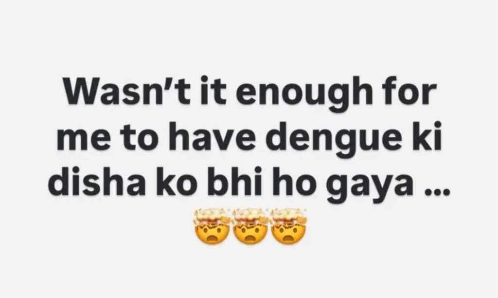 बता दें कि दिशा परमार (Disha Parmar) से पहले राहुल वैद्य को डेंगू हुआ था. उन्हें 104°F फीवर है. उन्होंने कुछ दिन पहले एक तस्वीर शेयर की थी. इसके बाद कैप्शन में डेंगू लिखा था. वहीं दिशा परमार (Disha Parmar) के डेंगू होने के बाद राहुल वैद्य (Rahul Vaidya) ने एक और पोस्ट किया था जिसमें लिखा- ‘क्या यही काफी नहीं था कि मुझे डेंगू हुआ है. अब दिशा को भी हो गया.’
