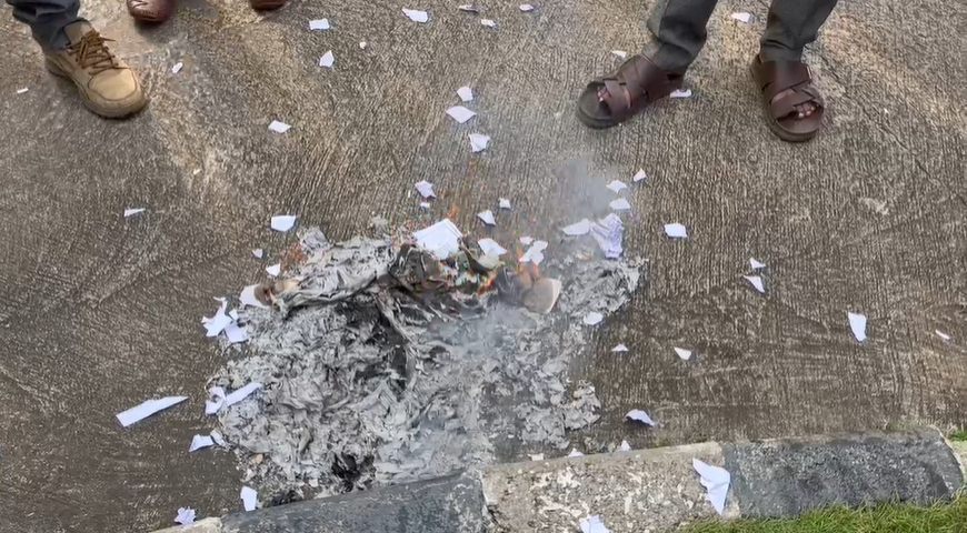 कर्मचारियों ने कार्यालय के बाहर जमकर नारेबाजी करते हुए आदेश की कॉपी को फाड़कर जलाया और मानव श्रृंखला बनाकर प्रदर्शन कर रहे हैं।