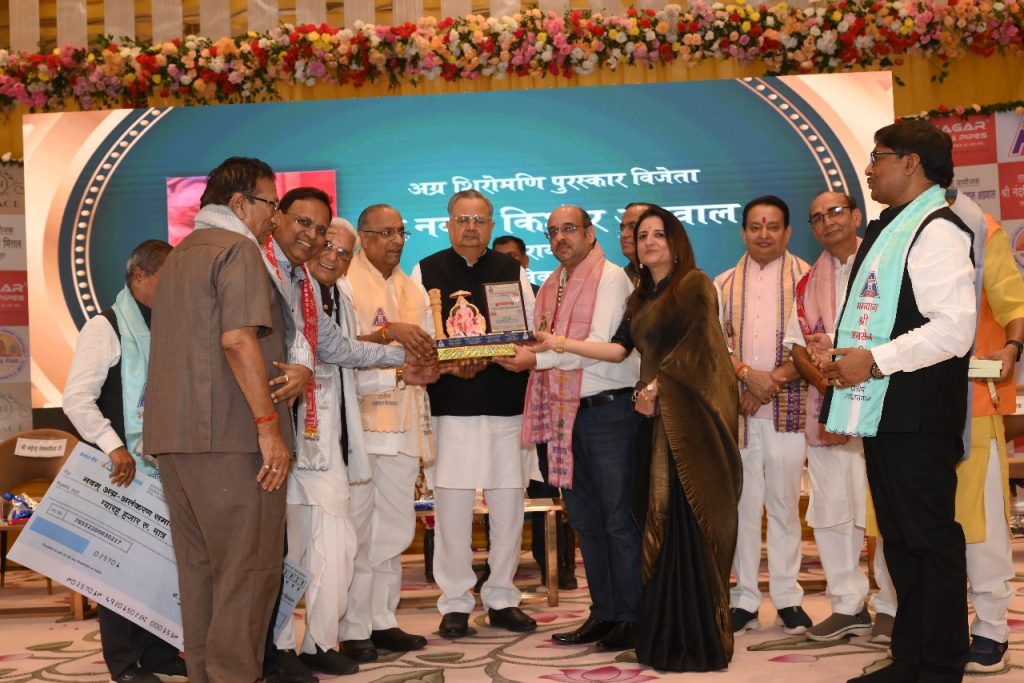 रायपुर. सागर टीएमटी के सौजन्य से आयोजित नवम अग्र अलंकरण समारोह का आयोजन गरिमामय वातावरण में किया गया. यह प्रतिष्ठित समारोह हर वर्ष समाज के प्रख्यात व्यक्तित्वों को उनके उत्कृष्ट कार्यों के लिए सम्मानित करने के लिए आयोजित किया जाता है.
