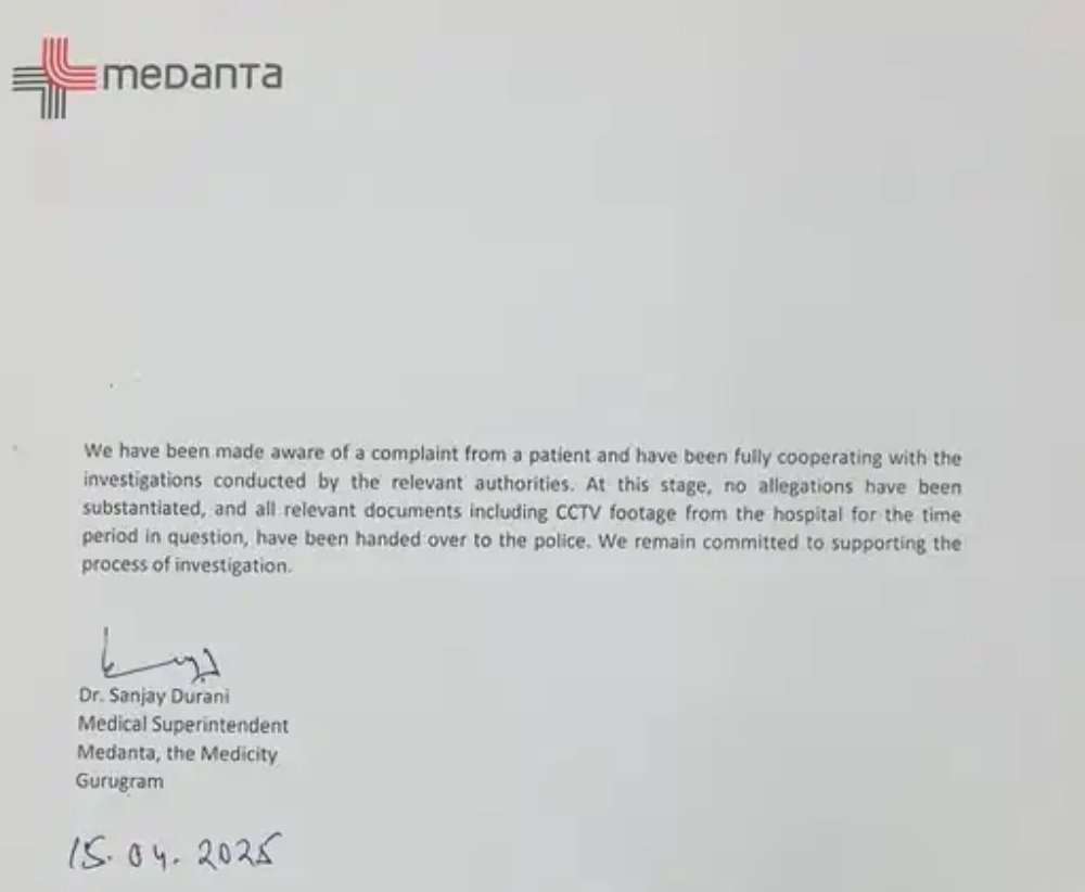 इस मामले में अस्पताल प्रशासन ने जांच चलने की बात कही है। अस्पताल की ओर से एक लेटर भी जारी किया गया है, जिसमें उनका कहना है कि पुलिस का पूरा सहयोग किया जा रहा है। अभी कोई आरोप साबित नहीं हुआ है। सीसीटीवी फुटेज महैया कराए गए हैं. गुरुग्राम पुलिस का कहना है कि पीड़िता का बयान मजिस्ट्रेट के सामने कोर्ट में दर्ज कर लिया गया है। पुलिस टीम अस्पताल के सीसीटीवी कैमरों की फुटेज की जांच कर रही है। जल्द ही आरोपी की पहचान कर उसे गिरफ्तार किया जाएगा।