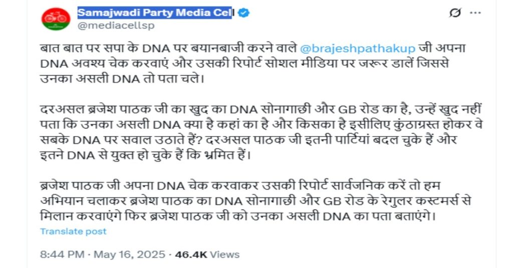 इसे भी पढ़ें : सपा की DNA वाली डर्टी पॉलिटिक्सः मीडिया सेल ने डिप्टी CM ब्रजेश पाठक को लेकर की थी घटिया पोस्ट, FIR दर्ज