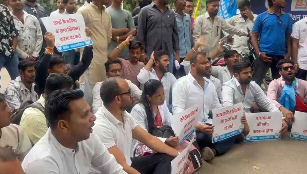 NSUI कार्यकर्ता और अभ्यर्थियों ने कहा, 1500 पदों की भर्ती चार दिनों में पैसे लेकर कर दी गई. समग्र शिक्षा की प्रभारी पुष्पा साहू के संरक्षण में घोटाले का आरोप लगाते हुए कहा, बिना रिजल्ट के नियुक्ति कर दी गई है. एनएसयूआई ने भर्ती को निरस्त करने, सभी कंपनियों की जांच कर ब्लैकलिस्ट करने की मांग की है. तीन दिन में अनियमितता की जांच कर नियमानुसार कार्रवाई करने का अल्टीमेटम भी दिया. मांगें पूरी नहीं होने पर उग्र आंदोलन की चेतावनी दी.