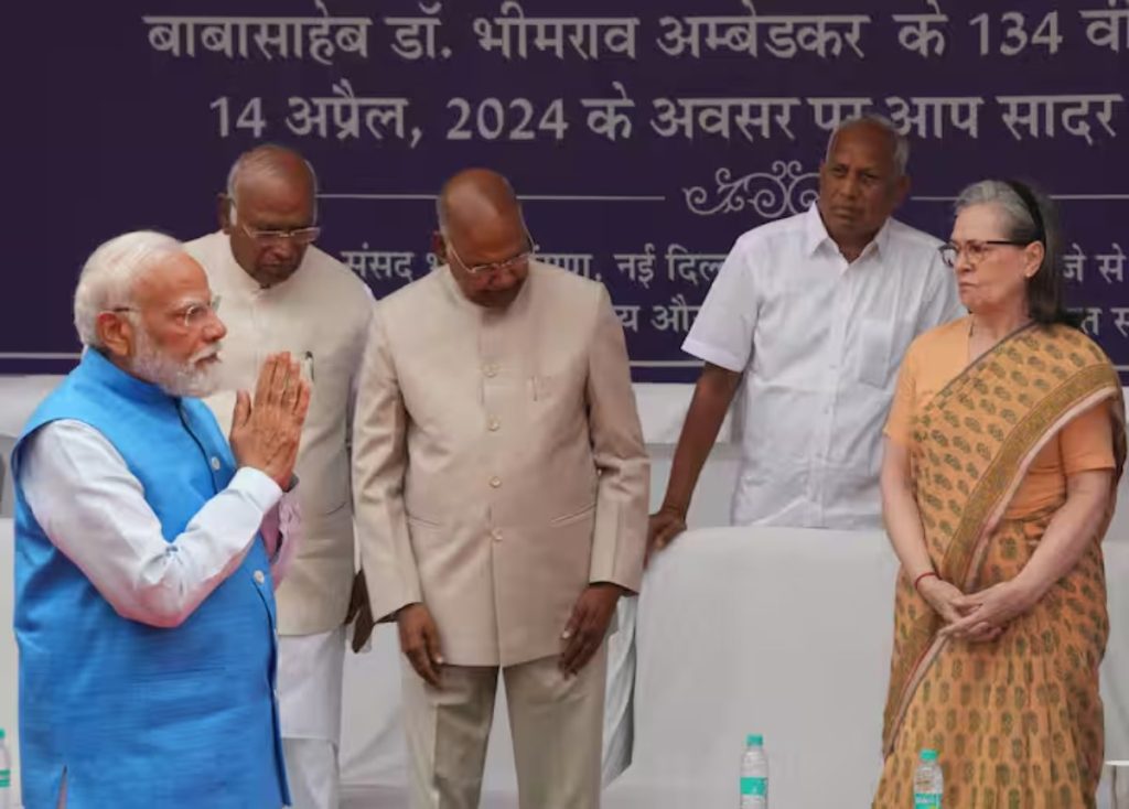 अंबेडकर जयंती के अवसर पर संसद भवन परिसर में प्रधानमंत्री नरेंद्र मोदी और कांग्रस की पूर्व अध्यक्ष सोनिया की भी मुलाकात हुई। इस दौरान पीएम मोदी ने सोनिया गांधी का अभिवादन किया।