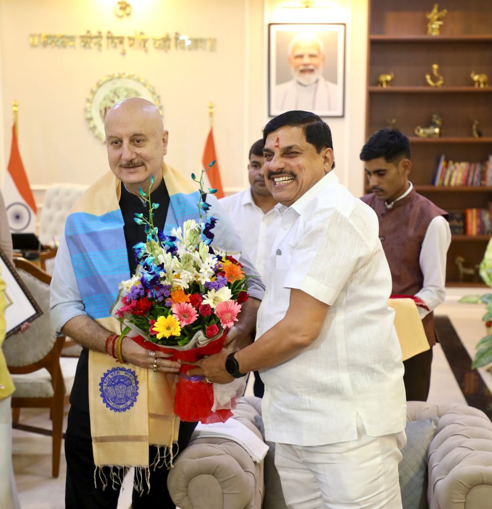 भोपाल। मुख्यमंत्री डॉ. मोहन यादव से मंगलवार की शाम समत्व भवन मुख्यमंत्री निवास में जाने-माने अभिनेता और फिल्म निर्देशक अनुपम खेर ने भेंट की। मुख्यमंत्री ने अनुपम खेर का अंग वस्त्र से सम्मान किया।