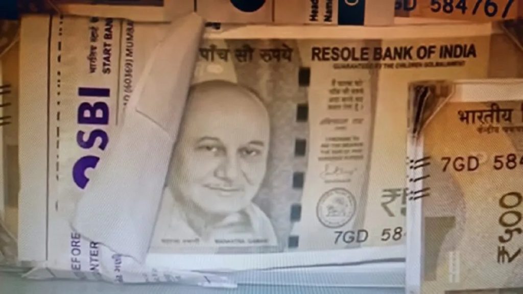 बता दें कि अनुपम खेर (Anupam Kher) ने वीडियो शेयर करते हुए लिखा – लो जी कर लो बात! पाँच सौ के नोट पर गांधी जी की फ़ोटो की जगह मेरी फ़ोटो???? कुछ भी हो सकता है!. रिपोर्ट के मुताबिक, गुजरात के अहमदाबाद जिले में एक मामला सामने आया है. अहमदाबाद पुलिस रु. 1.60 करोड़ नकली नोट पकड़े गए हैं. ये 500 रुपए के नोट हैं और इस करेंसी के कई बंडल मिले हैं. Read More – 1 साल बाद Honey Singh को आई बहन की याद, सरप्राइज देने मेलबर्न पहुंचे सिंगर …