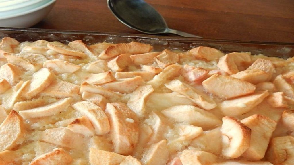 - अब एक बेकिंग डिश में पहले से उबाले हुए सेब के टुकड़े रखें और फिर ऊपर से तैयार मिश्रण डालें.ओवन को 180 डिग्री पर प्रीहीट करें और पुडिंग को 20-25 मिनट तक बेक करें, जब तक वह हल्का सा ब्राउन और सेट न हो जाए.