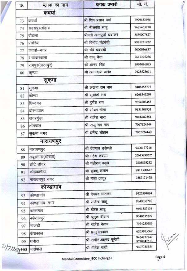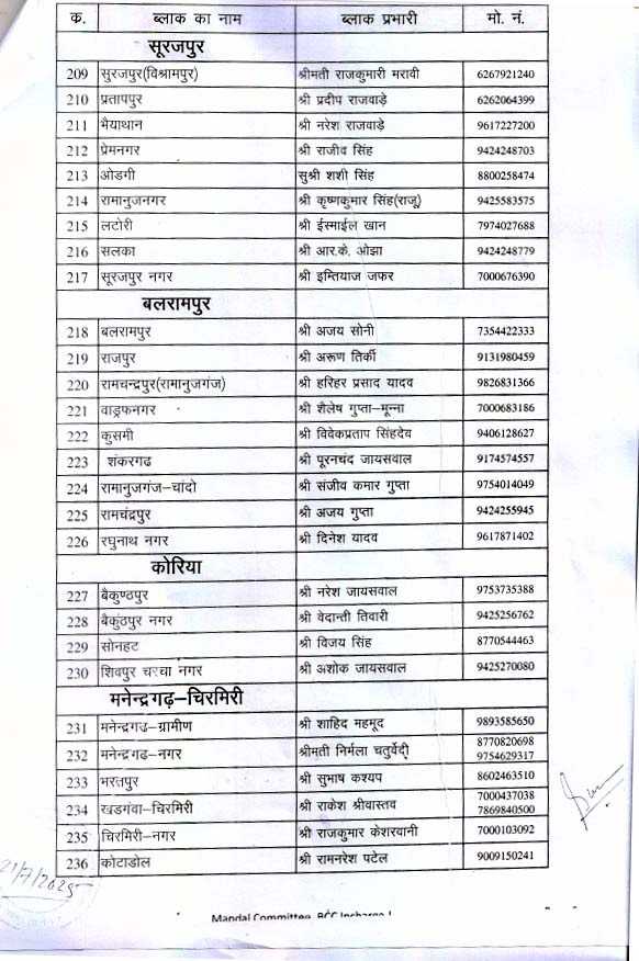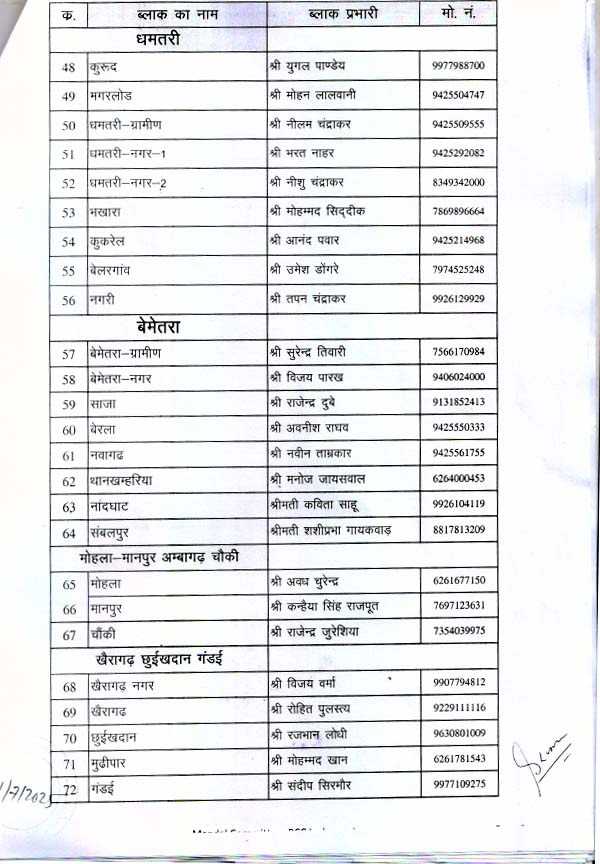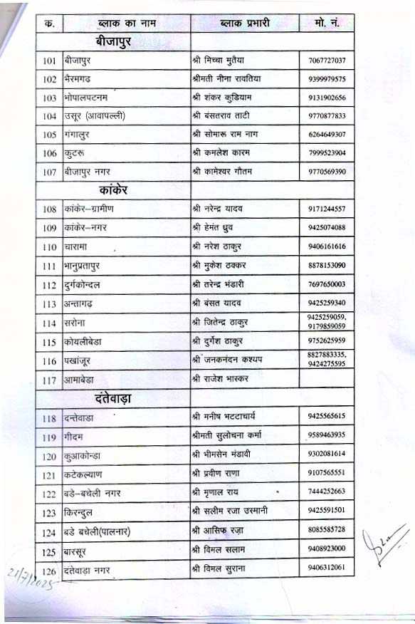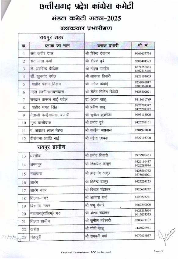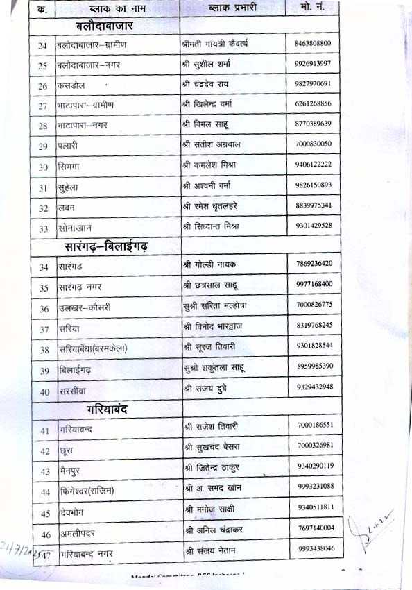 रायपुर. कांग्रेस के मंडल और सेक्टर कमेटियों के पुनर्गठन के लिए पीसीसी चीफ दीपक बैज ने प्रभारियों की नियुक्त की है. तीन महीने में नए और रिक्त पदों में नियुक्ति की जाएगी. इसका निर्देश राष्ट्रीय अध्यक्ष मल्लिकार्जुन खरगे ने बैठक में दिए थे.