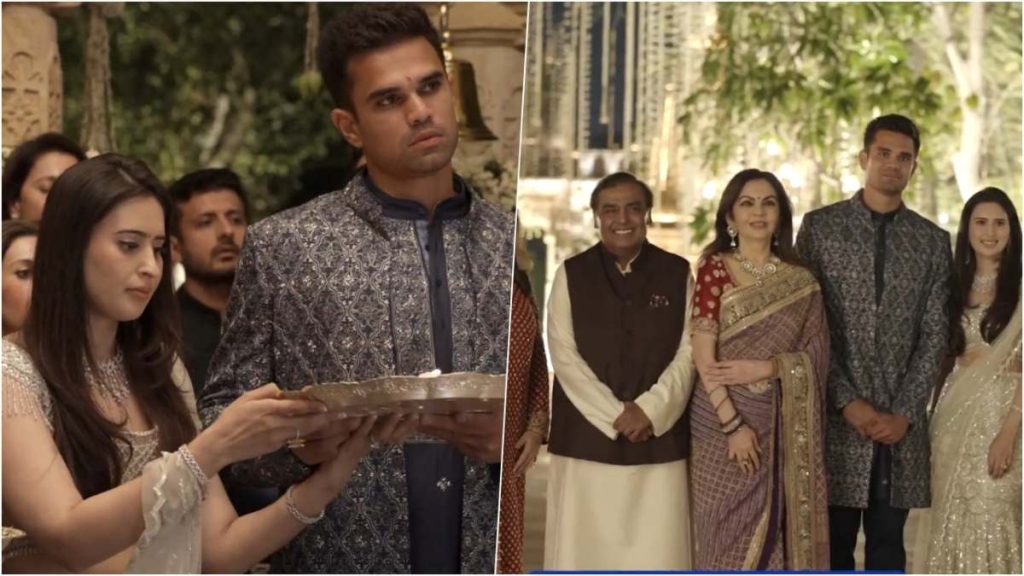 सामने आए वीडियो में अर्जुन तेंदुलकर (Arjun Tendulkar) और सानिया चंडोक (Saaniya Chandhok) को गणेश मंदिर में पूजा करते और आशीर्वाद लेते देखा जा सकता है. वहीं, नीता अंबानी (Nita Ambani) ने दोनों को आशीर्वाद देते हुए उनके रिश्ते की सराहना की और उज्ज्वल भविष्य की कामना किया है. उन्होंने कहा- मैंने अर्जुन तेंदुलकर (Arjun Tendulkar) को बचपन से हमारे स्कूल में पढ़ते और बढ़ते देखा है और अब तुम्हें जीवन की नई शुरुआत करते देखकर बेहद खुशी हो रही है.