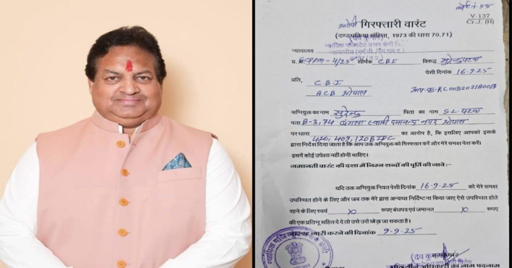 इंदौर की विशेष एमपी-एमएलए कोर्ट ने भोजपुर से बीजेपी विधायक सुरेंद्र पटवा के खिलाफ अरेस्ट वारंट जारी किया है। सुरेंद्र पटवा के SBI समेत कई बैंकों में फर्जी खातों की जानकारी मिली थी। पटवा के खिलाफ 10 दिनों के भीतर दूसरी बार वारंट जारी हुआ है। 29 अगस्त 2025 को पहला वारंट जारी हुआ था। बीजेपी विधायक पटवा को 8 सितंबर को पेश होना था, लेकिन कोर्ट में पेश नहीं हुए।