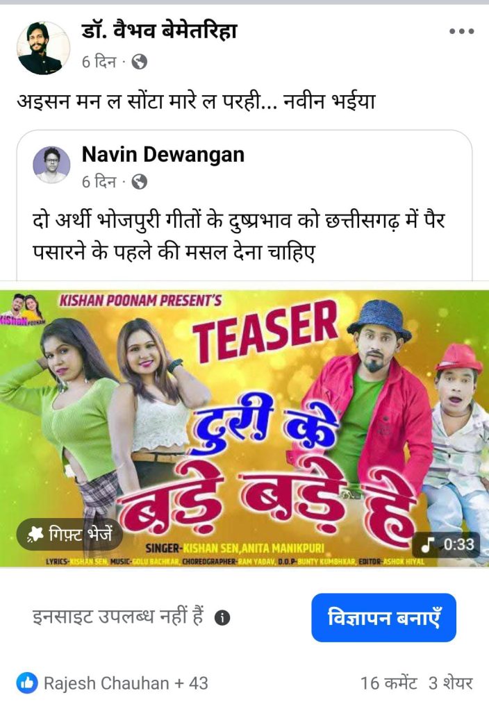सोशल मीडिया प्लेटफॉर्म्स लोगों ने हाल ही में रिलीज हुए छत्तीसगढ़ी गाने के टीजर के खिलाफ जमकर नाराजगी जताई है, जिसमें अश्लील शब्दों का प्रयोग किया गया है. छत्तीसगढ़ के कई कलाकारों समेत जनता ने इसे प्रदेश की संस्कृति को दूषित करने वाला बताया है.