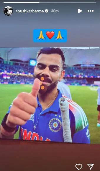 बता दें कि अनुष्का शर्मा (Anushka Sharma) ने अपनी इंस्टाग्राम स्टोरी पर विराट कोहली (Virat Kohli) की एक फोटो शेयर की, जिसमें वो कैमरे की तरफ देखकर थम्सअप दिखाते नजर आ रहे हैं. इस फोटो के साथ एक्ट्रेस ने हाथ जोड़ने वाला और दिल का इमोजी लगाया, जो उनके प्यार और गर्व को दिखाता है. चैंपियंस ट्रॉफी में शानदार शतक लगाकर कोहली ने अपने विराट प्रदर्शन से इतिहास रच दिया है. वे चैंपियंस ट्रॉफी में पाकिस्तान के खिलाफ शतक लगाने वाले पहले भारतीय बल्लेबाज बन गए हैं, जिससे पूरे देश को उन पर गर्व है.