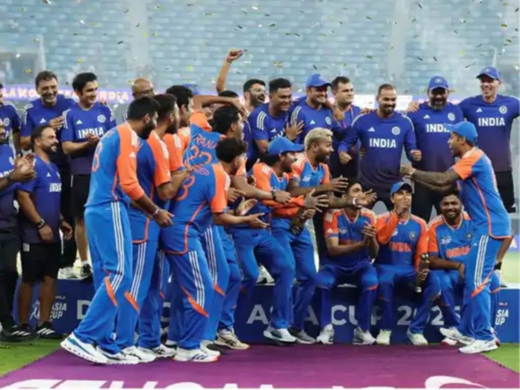 फाइनल मुकाबले के बाद हुए पोस्ट-मैच प्रेजेंटेशन में भारतीय टीम ने मोहसिन नकवी से ट्रॉफी लेने से इनकार कर दिया। इसके बाद टीम ने बिना ट्रॉफी के सेलिब्रेशन किया। कप्तान सूर्यकुमार यादव ने साथी खिलाड़ियों के सामने खाली हाथ ही ऐसा जेस्चर बनाया मानो वे ट्रॉफी लेकर आ रहे हों। बाकी खिलाड़ियों ने भी इसे ही असली ट्रॉफी मानकर सेलिब्रेट किया।