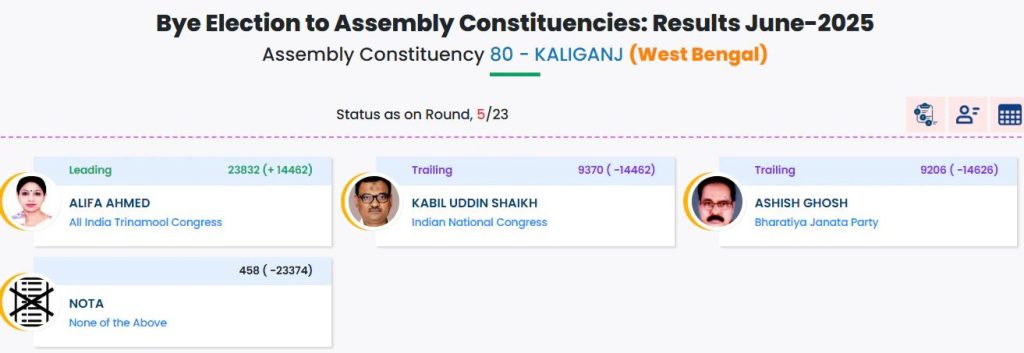कालीगंज में TMC प्रत्याशी अलीफा अहमद को बड़ी बढ़त