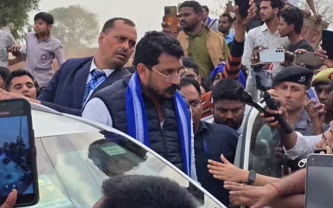 मथुरा. सुरीर थाना क्षेत्र के परशोती घड़ी में नगीना सांसद चन्द्रशेखर का विरोध हुआ है. यहां उनके काफिले पर हमला किया गया है. वे करनावल से गांव भगतिया नगला जा रहे थे. इस बीच ये हमला हुआ है. जिसके बाद पुलिसकर्मी और कार्यकर्ताओं ने चंद्रशेखर को बचाया. सांसद चंद्रशेखर की गाड़ी को घेरकर उन्हें सुरक्षित निकाला.