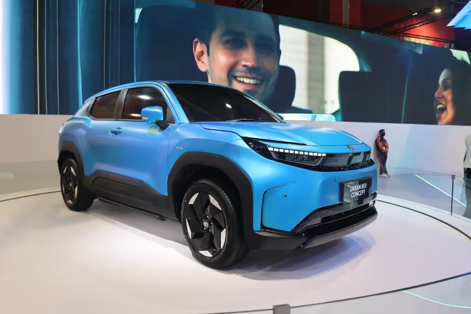 टोयोटा ने ऑटो एक्सपो 2025 में अपना अर्बन क्रूज़र BEV कॉन्सेप्ट पेश किया. यह मारुति की ई-विटारा का रीबैज्ड वर्जन है लेकिन इसमें टोयोटा की डिज़ाइन लैंग्वेज के अनुसार बदलाव किए गए हैं. इसकी अनुमानित कीमत भारत में लगभग ₹18 लाख हो सकती है.