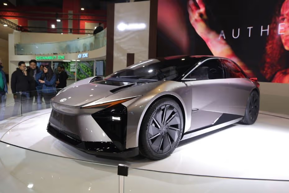 लेक्सस का LF-ZC कॉन्सेप्ट पहले जापानी मोबिलिटी शो में पेश किया गया था और अब इसे ऑटो एक्सपो 2025 में भी दिखाया गया. इसका एरोडायनामिक सिल्हूट, स्लोपिंग रूफलाइन और कनेक्टेड टेललैंप्स इसे फ्यूचरिस्टिक लुक देते हैं. इंटीरियर में F1 कार से प्रेरित स्टीयरिंग व्हील, कई स्क्रीन और एंबियंट लाइटिंग सिस्टम दिया गया है.