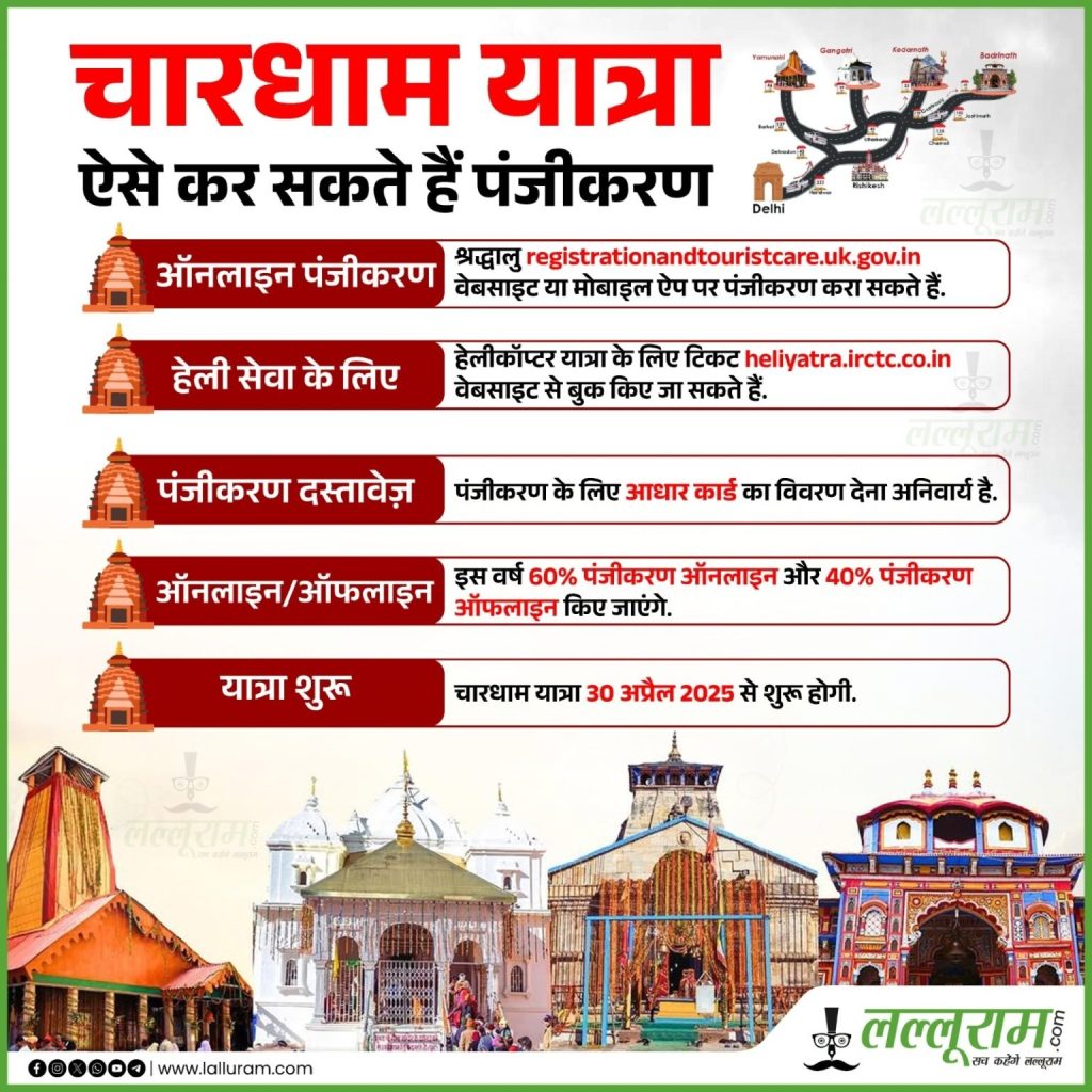 बता दें कि 30 अप्रैल से चारधाम यात्रा (Chardham Yatra 2025) की शुरुआत हो रही है. जिसमें यमुनोत्री और गंगोत्री के कपाट 30 अप्रैल को ही खुलेंगे. वहीं 2 मई को बाबा केदारनाथ धाम के कपाट खुलेंगे. इसके बाद 4 मई को भगवान बद्री विशाल के मंदिर (बद्रीनाथ धाम) के कपाट भक्तों के लिए खोल दिए जाएंगे.