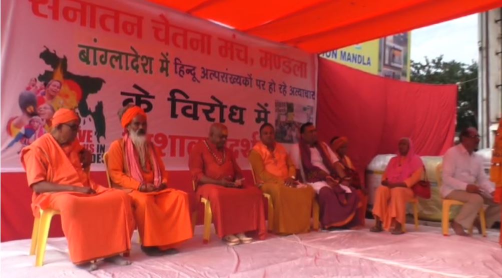 पवन राय, मंडला। सनातन चेतना मंच की ओर से रेड क्रॉस भवन के सामने जनसभा को संबोधित किया गया। वक्ताओं ने बांग्लादेश में हिंदू, बौद्ध और ईसाइयों पर हो रहे हमले और अत्याचार के विरोध में जमकर हमला बोला। इस दौरान मुख्य रूप से बांग्लादेश में अल्पसंख्यकों पर हो रहे अत्याचार पर भारत सरकार को तत्काल संज्ञान लेने और  UNO से भी इसमें हस्तक्षेप करने का आग्रह किया गया।