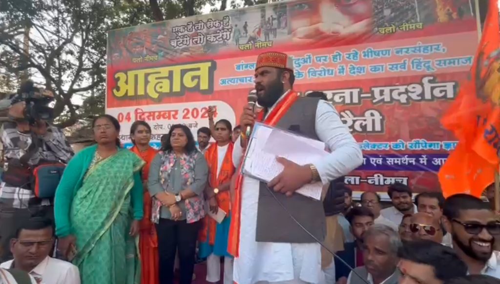 बांग्लादेश में हिंदुओं पर हो रहे अत्याचार को लेकर नीमच में हुआ विरोध प्रदर्शन