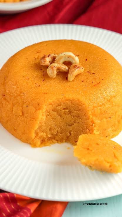 6-रवा केसरी तैयार होने के बाद, उसमें पहले से भुने हुए ड्राई फ्रूट्स डालकर सजाएं और इसे कुछ मिनट के लिए ढक कर पकने दें, ताकि फ्लेवर अच्छे से मिल जाए.रवा केसरी को गर्मागर्म सर्व करें.