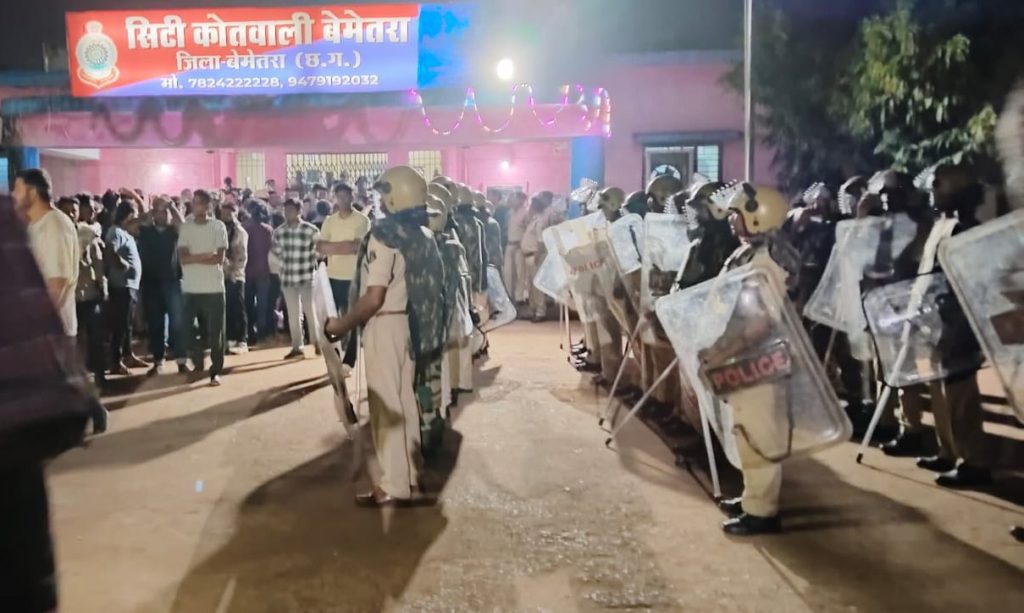 योगेश सिंह राजपूत, बेमेतरा. छत्तीसगढ़ के बेमेतरा शहर में बीती रात हुए भीषण सड़क हादसे के बाद स्थानीय लोगों में भारी आक्रोश है. सोमवार को आह्वन के बाद बेमेतरा बंद का आंशिक असर देखने को मिल रहा है. दुकानदारों का भी समर्थन मिल रहा है. लोगों ने अपनी दुकानें चप्पे-चप्पे पर पुलिस बल की तैनाती की गई है.