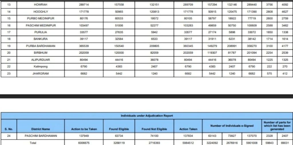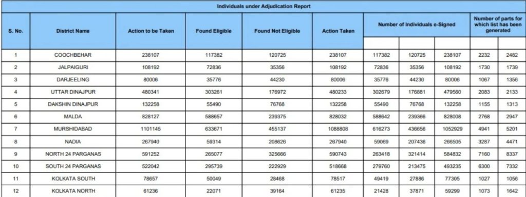 निर्वाचन आयोग के इतिहास में ये पहली बार है जब पश्चिम बंगाल एसआईआर के संबंध में जिलावार एडिशन और डिलिशन (नाम जोड़ना/हटाना) का डेटा सार्वजनिक किया गया है. आयोग का उद्देश्य इस पूरी प्रक्रिया में पारदर्शिता लाना और चुनावी सूचियों की विश्वसनीयता बढ़ाना है। विचाराधीन मामलों की इतनी बड़ी संख्या का निपटारा करना एक बड़ी प्रशासनिक चुनौती थी, जिसे न्यायिक अधिकारियों की मदद से पूरा किया गया है। ये डेटा अब सार्वजनिक तौर पर उपलब्ध है।