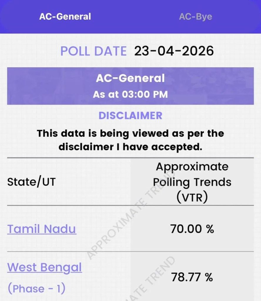 - दोपहर 3 बजे तक- 78.77 % मतदान