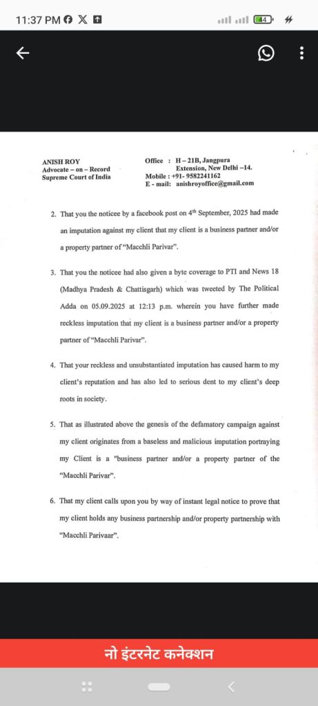 शब्बीर अहमद, भोपाल। मध्यप्रदेश की राजधानी भोपाल में बहचर्चित ड्रग्स तस्करी के सरगना मछली परिवार को प्रदेश की सियासत गर्म है। आरोपियों के मंत्री और बीजेपी नेताओं के साथ संबंध का खुलासा होने के बाद कांग्रेस हमलवार है। मामले को लेकर पीसीसी चीफ जीतू पटवारी ने सीएम डॉ मोहन यादव से कई सवाल पूछे हैं। वहीं इसी मामले में विधायक के भतीजे ने प्रदेश के एक पूर्व मंत्री को लीगल नोटिस भेजा है।